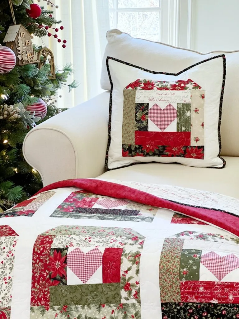 This pattern builds on the lovely Home Sweet Home quilt, adding extra charm and detail to make it shine for the holidays. - BONUS Pillow Pattern Included!