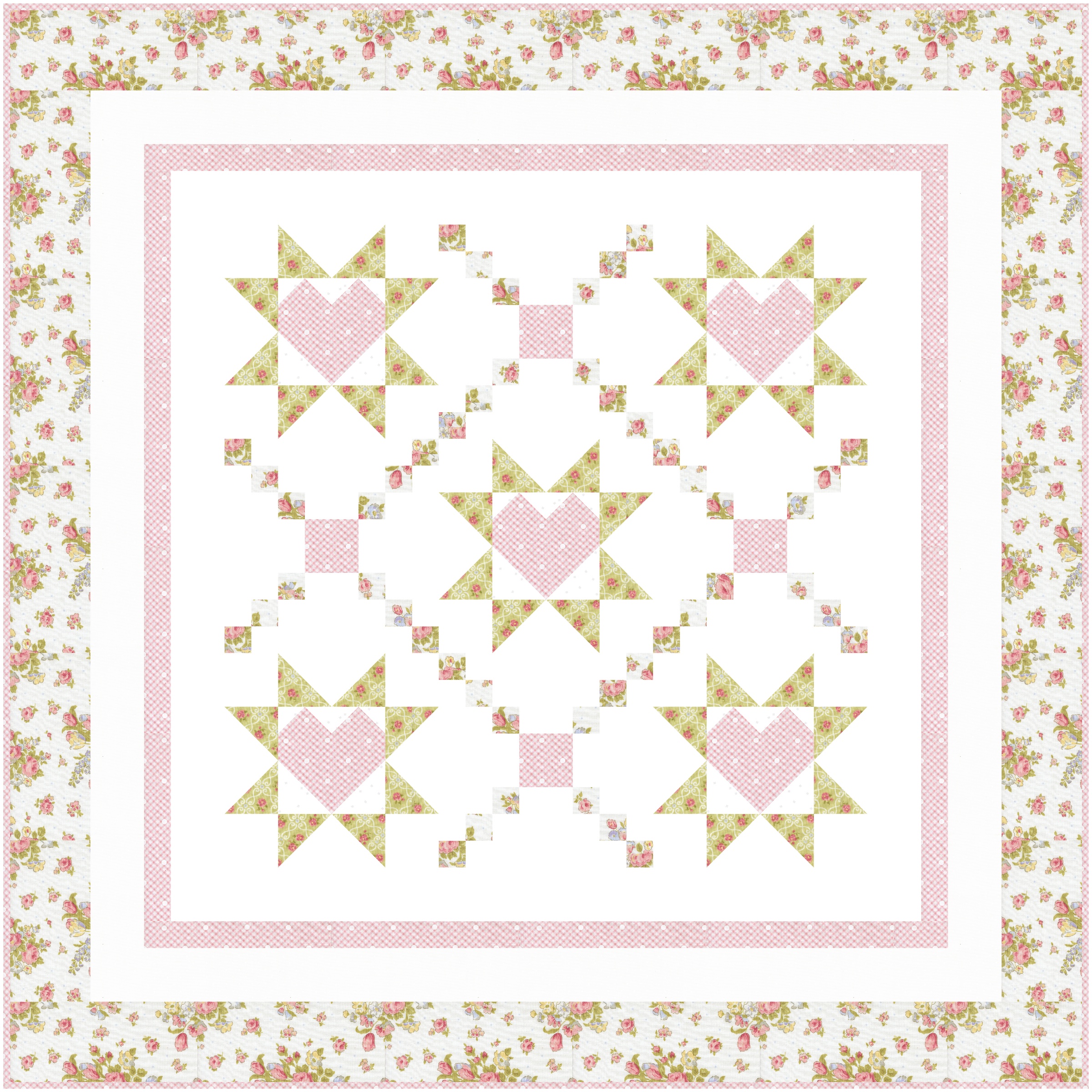 Baby Quilt Kit – Loving Wishes in Pink and Green