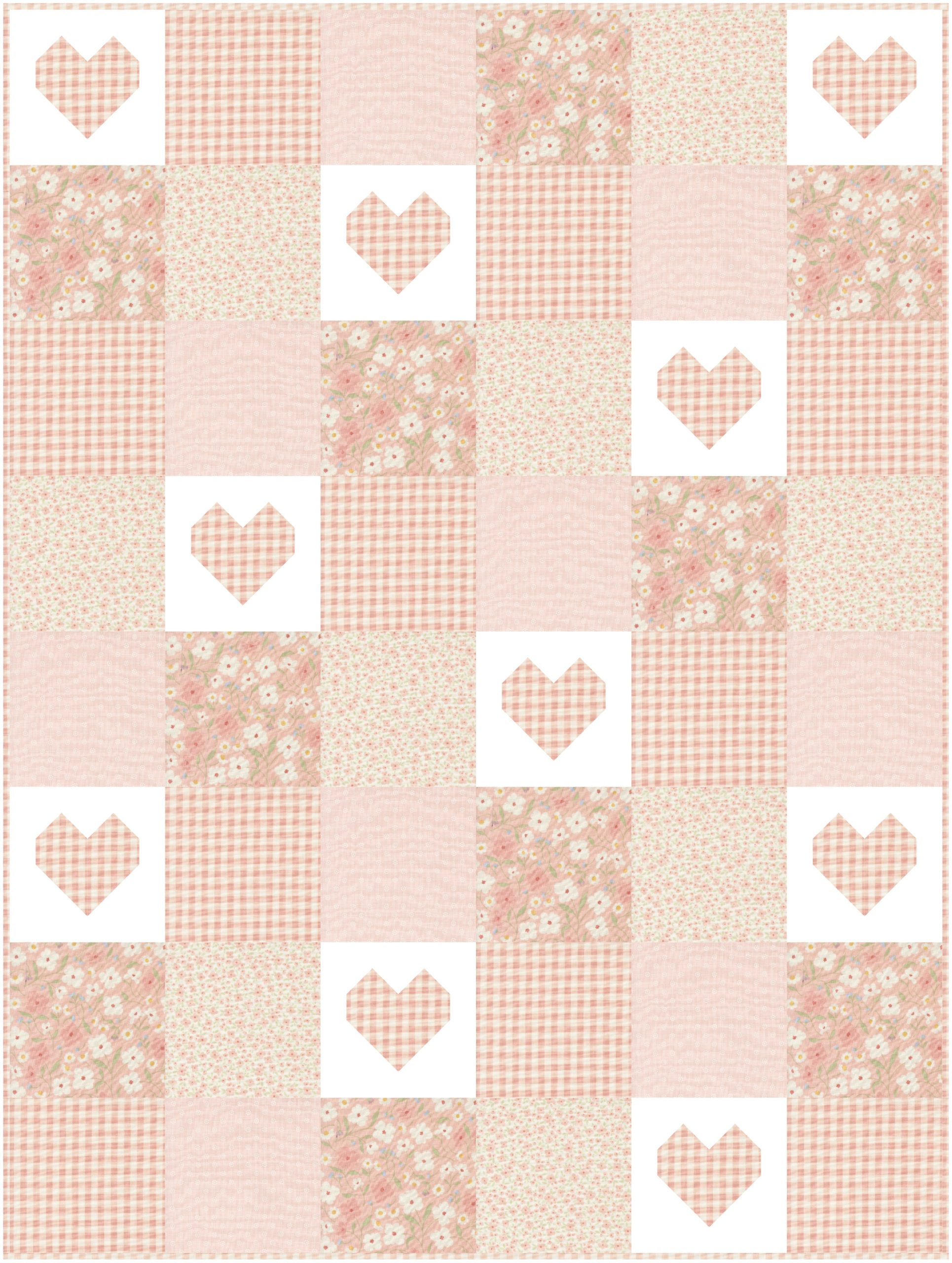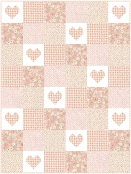 The Patchwork of Love quilt pattern showcases a timeless look with simple piecing, making it a perfect project for confident beginners and beyond.