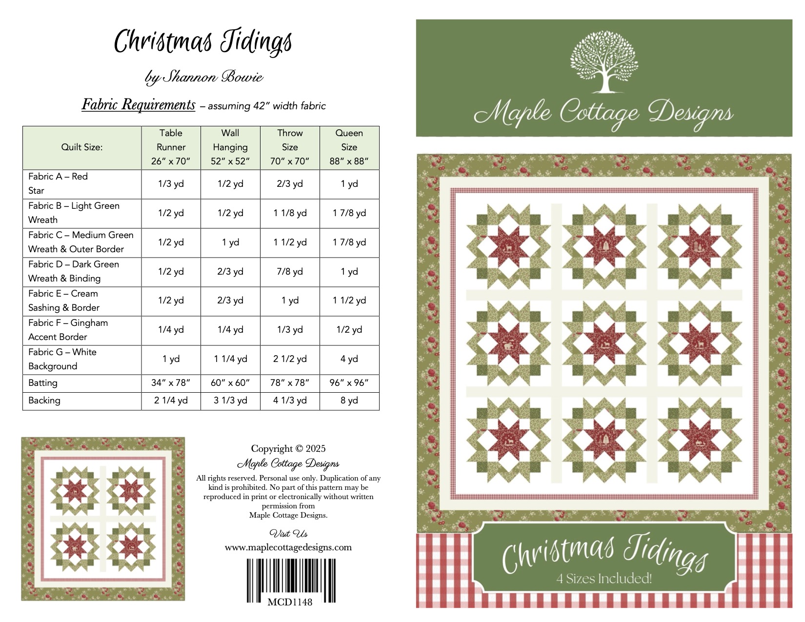 Copyright Β© Maple Cottage Designs β Quilt patterns cannot be reproduced and sold. Duplication of any kind is prohibited.