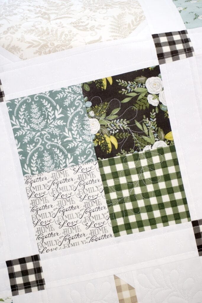 I then added some straight-line quilting along the sashing to give it a feeling of garden rows. This combination of designs worked really well together and made it quick to finish.